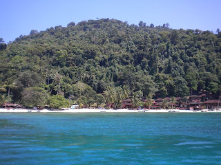 Ficamos na ilha mais pequena e, mais propriamente, no lado conhecido por "Long Beach". Saltamos do barco rapido para um táxi de água e fomos 'despejadas' na praia com a bagagem (Onde é que eu ja vi isto antes? Repararam na minha mala nova?).