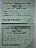 Entretanto dirigi-me com a Jyoti à escola pública para pagar contas devidas relativas a oito das crianças. Mesmo sendo supostamente grátis, há sempre coisas a pagar, como: inscrição nos exames, uso de computadores, material escolar... Como já referi, nas escolas públicas é sempre usada, oralmente e na escrita, a língua nepalesa e, quando muito, os alunos poderão ter uma hora semanal de Inglês, o que não os torna proficientes nesta língua, tão importante para lidar com os turistas, por exemplo. Aliás, eles não saem destas escolas muito bem preparados para o que quer que seja.