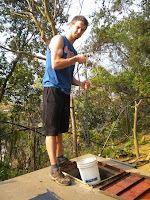 Visitando a casa e constatando as necessidades de melhoramento nomeadamente em relação à falta de canalização funcional.