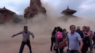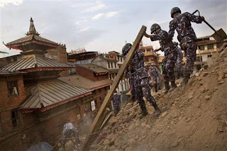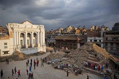 Kathmandu, capital do Nepal, foi particularmente afetada. Bairros antigos, estruturas frágeis de madeira e barro, não resistiram ao sismo e simplesmente ruíram. Edifícios históricos, templos do séc. XVII, ficaram reduzidos a escombros. Outros mais modernos tombaram, ruas e estradas estalaram.