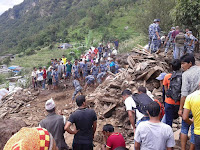 país, o Annapurna. Os deslizamentos provocam o bloqueio de rios e consequentes inundações. Centenas de milhares de pessoas ficaram desabrigadas indo viver para a floresta, sem nada.