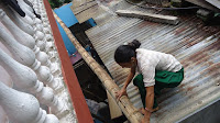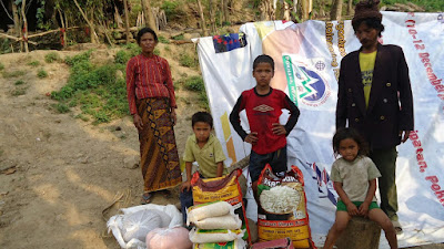O meu amigo Raj Lama, pintor, recebeu parte do dinheiro, comprou bens de primeira necessidade e deslocou-se com um amigo, de mota, à aldeia de Khampur que fica a cerca de duas horas de Pokhara. Depois transportaram os sacos às costas e caminharam até ao lugarejo onde distribuíram os mantimentos por famílias necessitadas que ficaram com as suas casas destruídas e que vivem agora em tendas e pequenos abrigos.